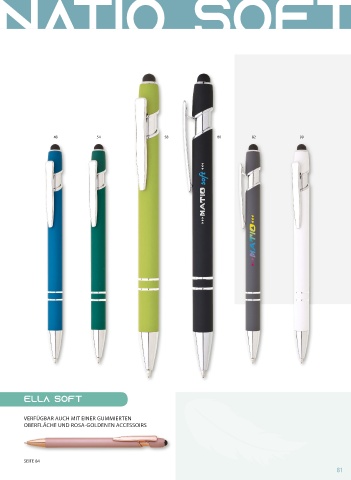 48 54 58 80 82 99 ella soft VERFÜGBAR AUCH MIT EINER GUMMIERTEN OBERFLÄCHE UND ROSA-GOLDENEN ACCESSOIRS SEITE 84 81