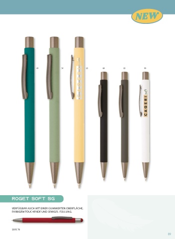 49 50 65 80 85 99 roget soft sg VERFÜGBAR AUCH MIT EINER GUMMIERTEN OBERFLÄCHE, FARBIGEM TOUCHENDE UND SEMIGEL-FÜLLUNG. SEITE 78 89