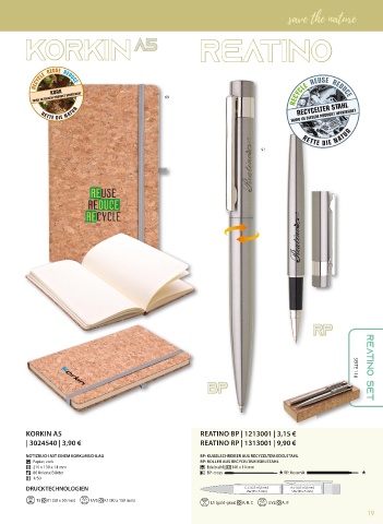NOTIZBUCH MIT EINEM KORKUMSCHLAG BP: KUGELSCHREIBER AUS RECYCELTEM EDELSTAHL