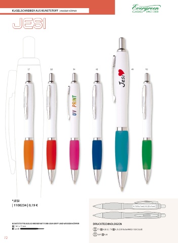 KUNSTSTOFFKUGELSCHREIBER MIT FARBIGEM GRIFF UND WEISSEM KÖRPER DRUCKTECHNOLOGIEN